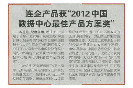 2012年4月7日《大連日?qǐng)?bào)》對(duì)寶士達(dá)公司進(jìn)行了題為《連企產(chǎn)品獲“2012中國(guó)數(shù)據(jù)中心最佳產(chǎn)品方案獎(jiǎng)”》的報(bào)道。報(bào)道內(nèi)容如下: