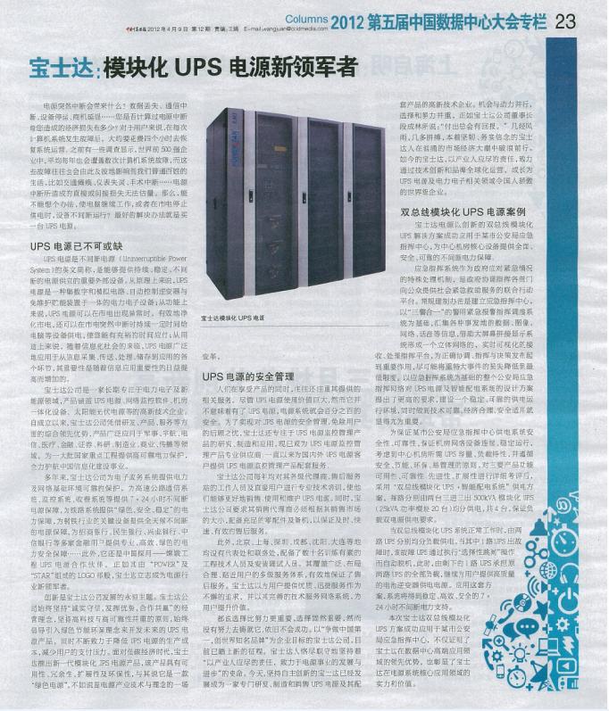 2012年第12期《中國計算機報》對寶士達公司進行了題為《寶士達:模塊化UPS電源新領軍者》的大篇幅報道,報道內容如下:
