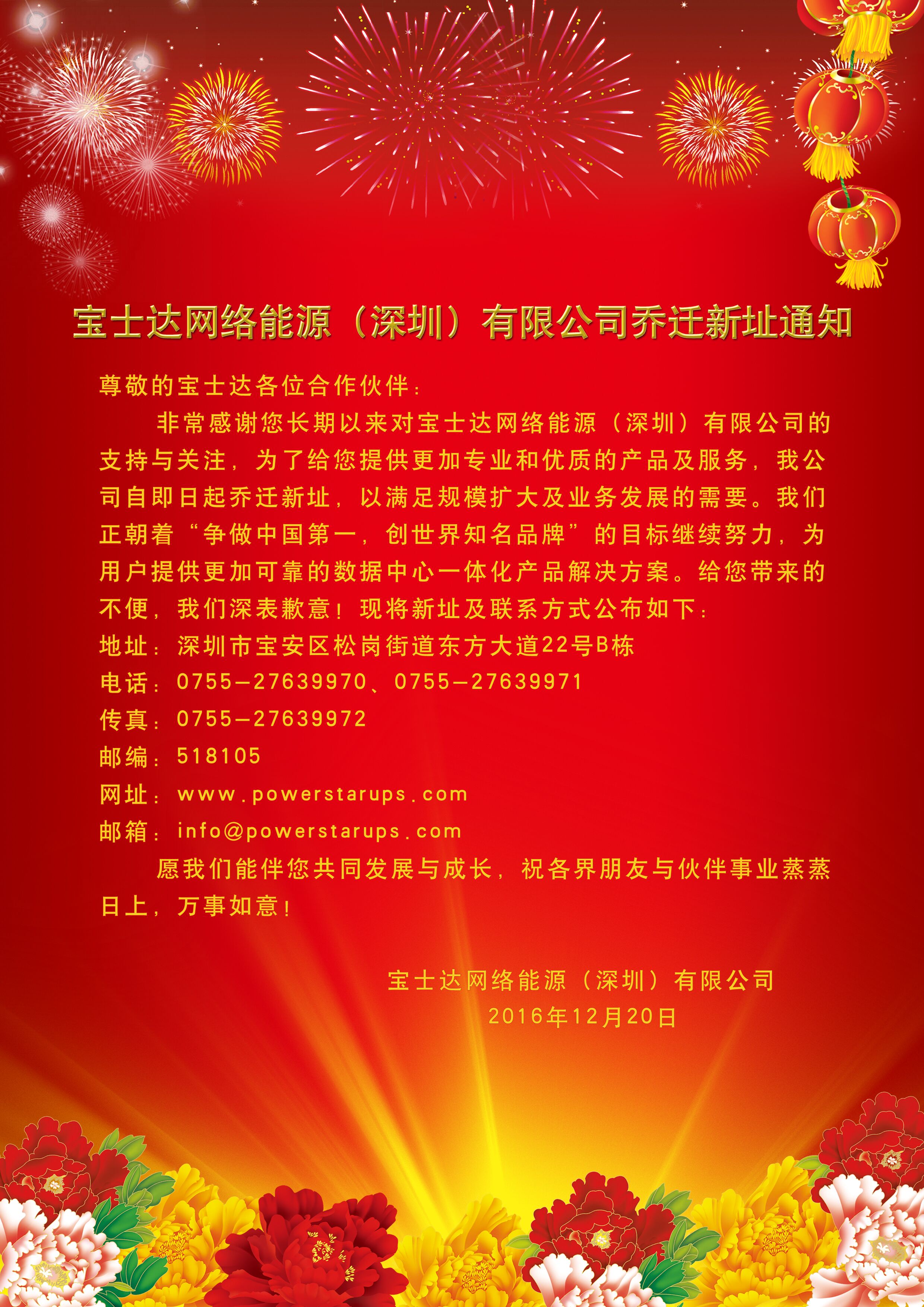 寶士達網絡能源(深圳)有限公司喬遷新址通知