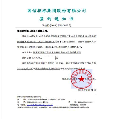 近日,寶士達公司憑借著產(chǎn)品的優(yōu)良品質(zhì)、卓越的性能成功中標“國家開發(fā)銀行北京分行機房UPS設備采購項目”,為其提供長期、穩(wěn)定不間斷電源保障。此次中標產(chǎn)品是寶士達針對國內(nèi)電網(wǎng)環(huán)境,并結合網(wǎng)絡、金融等系統(tǒng)對電源的高可靠性要求,以全新的數(shù)字技術研制出的新一代工頻在線式智能型UPS。