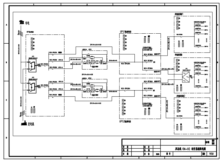 根據(jù)當今UPS產(chǎn)業(yè)的技術發(fā)展水平,以選用具有“雙總線輸入”和“雙總線輸出”供電功能的模塊化(N+X)UPS冗余供電系統(tǒng)為宜。它是由如下幾部分供電系統(tǒng)所構(gòu)成的: