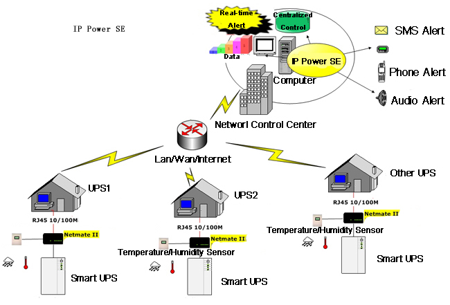 It applies with remote network UPS power supply equipped with Netmate II / Netmate II EXT / Netmate SE / Netmate II mini / Sitemate ,UPS battery pack and the surrounding environment conditions of the network centralized monitoring and management.